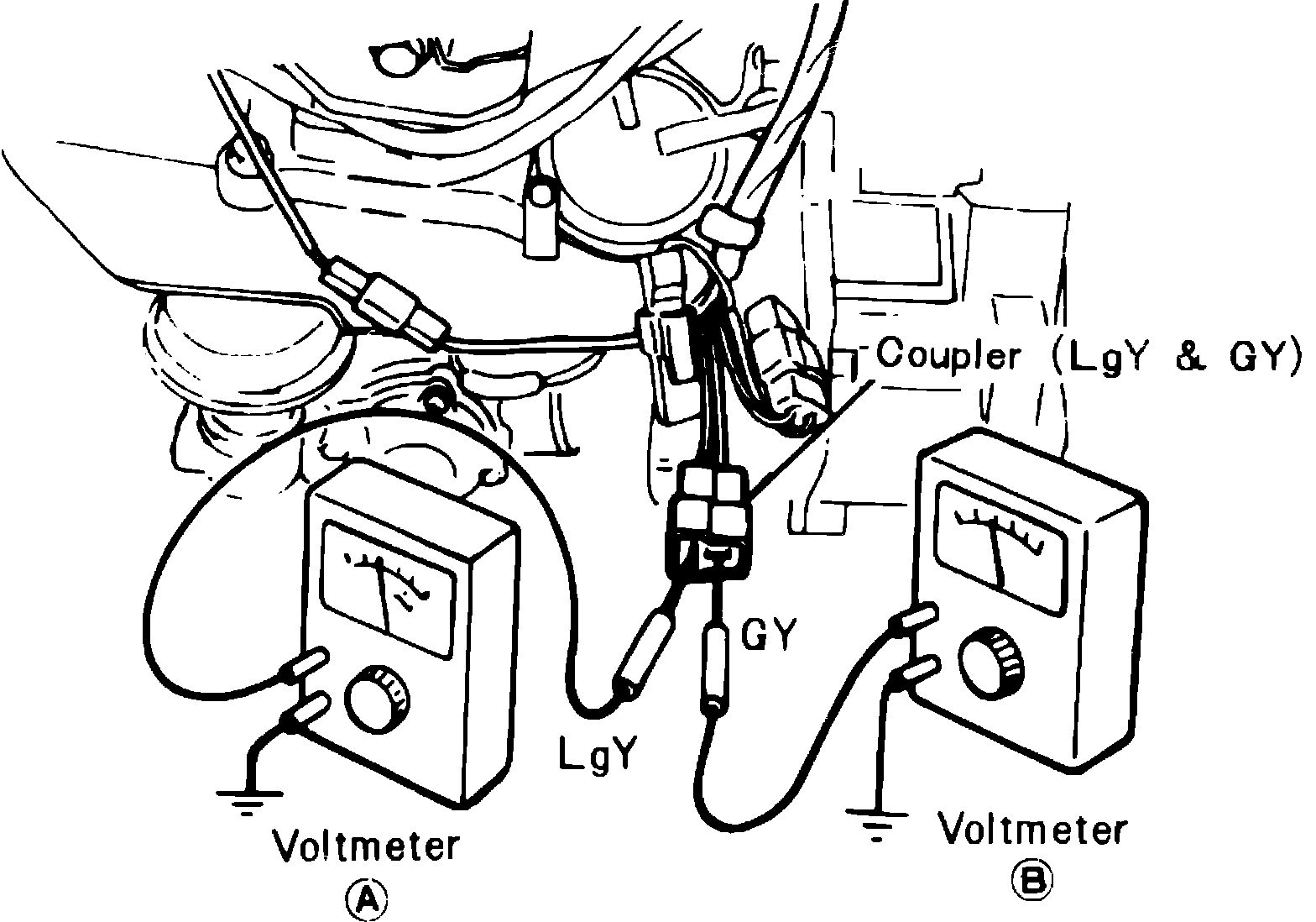 4. Connect voltmeters to each terminal (GY & LgY), Fig. 13.