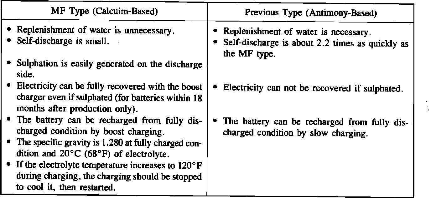Battery, Maintenance Free - Characteristics of MF Type