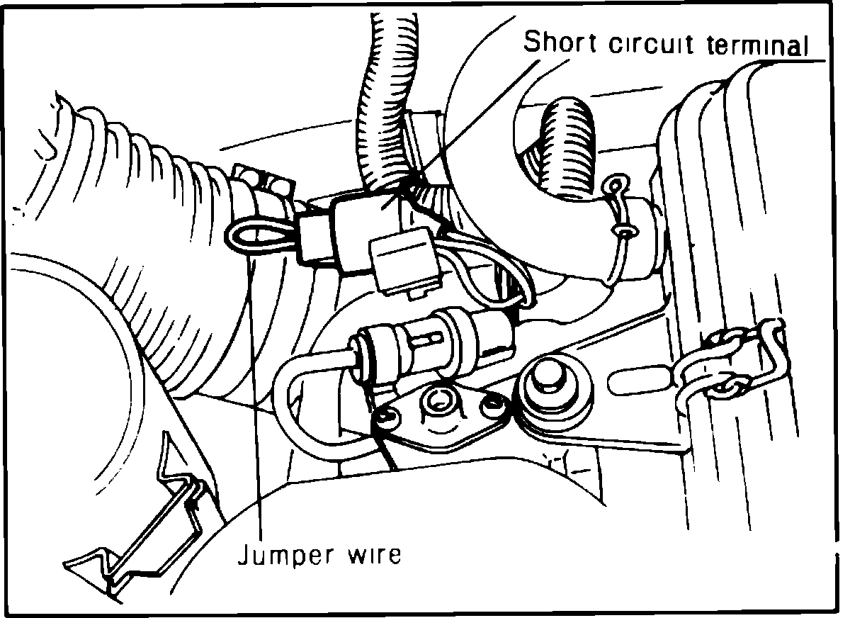 Fig. 30 Connecting jumper wire to fuel pump short circuit terminal.:
