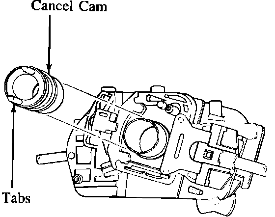 3. Inspect the cancel cam. If the tabs are broken off the cancel cam, the combination switch can be repaired by replacing the cancel cam.