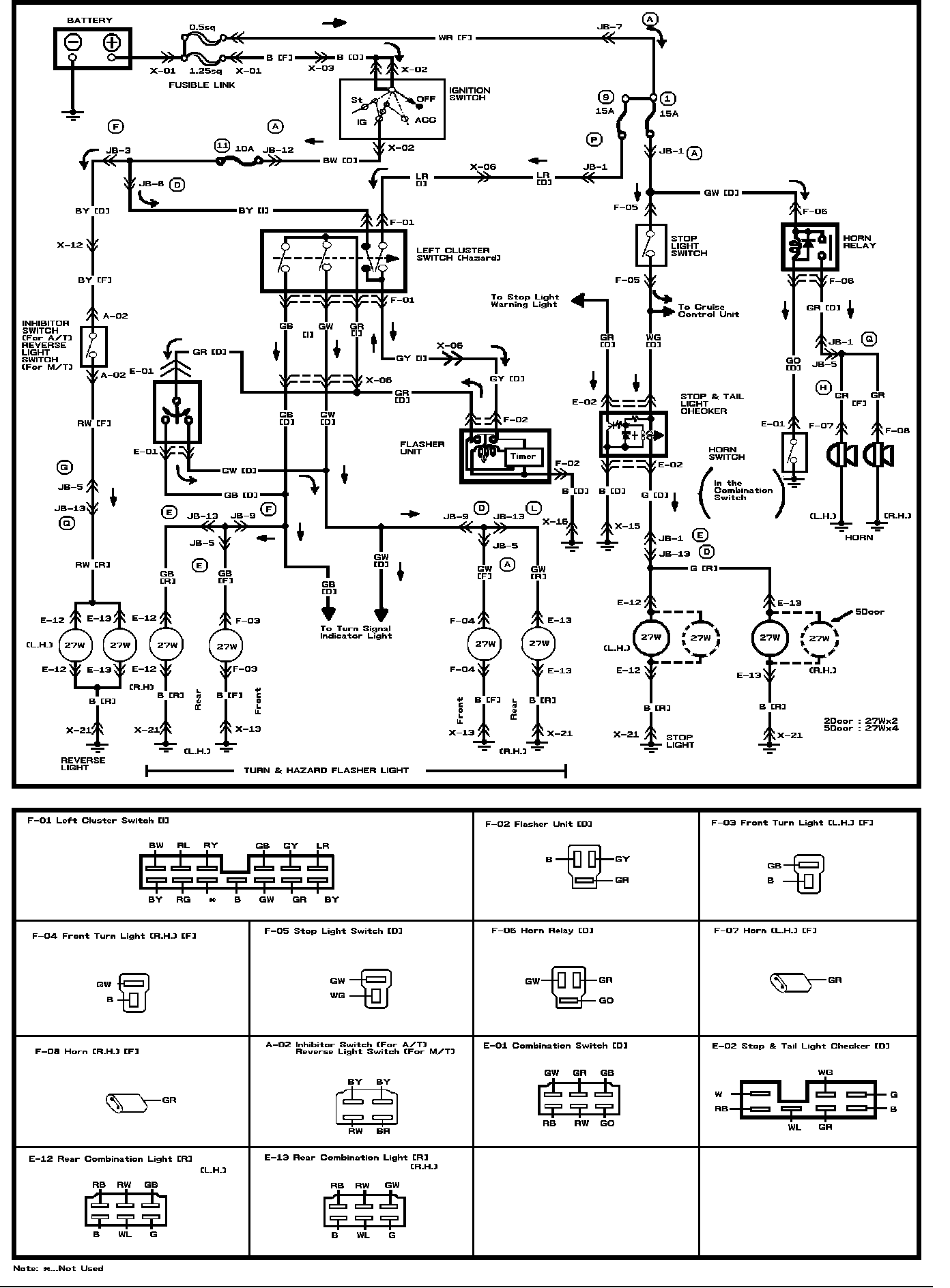 Fig. 55 Back-Up, Hazard Flasher, Stop & Turn Signal Lights & Horn Wiring Circuit. 2 & 5 Door: