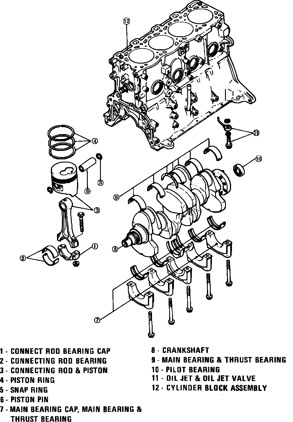 Fig. 12 Exploded view of crankshaft & cylinder block assembly: