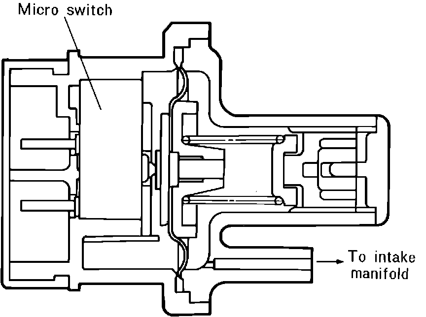 2. When the vacuum of the intake manifold nears the atmospheric pressure (less than 60 mm Hg), the vacuum switch, Fig. 34, will turn off and signal to the control unit.