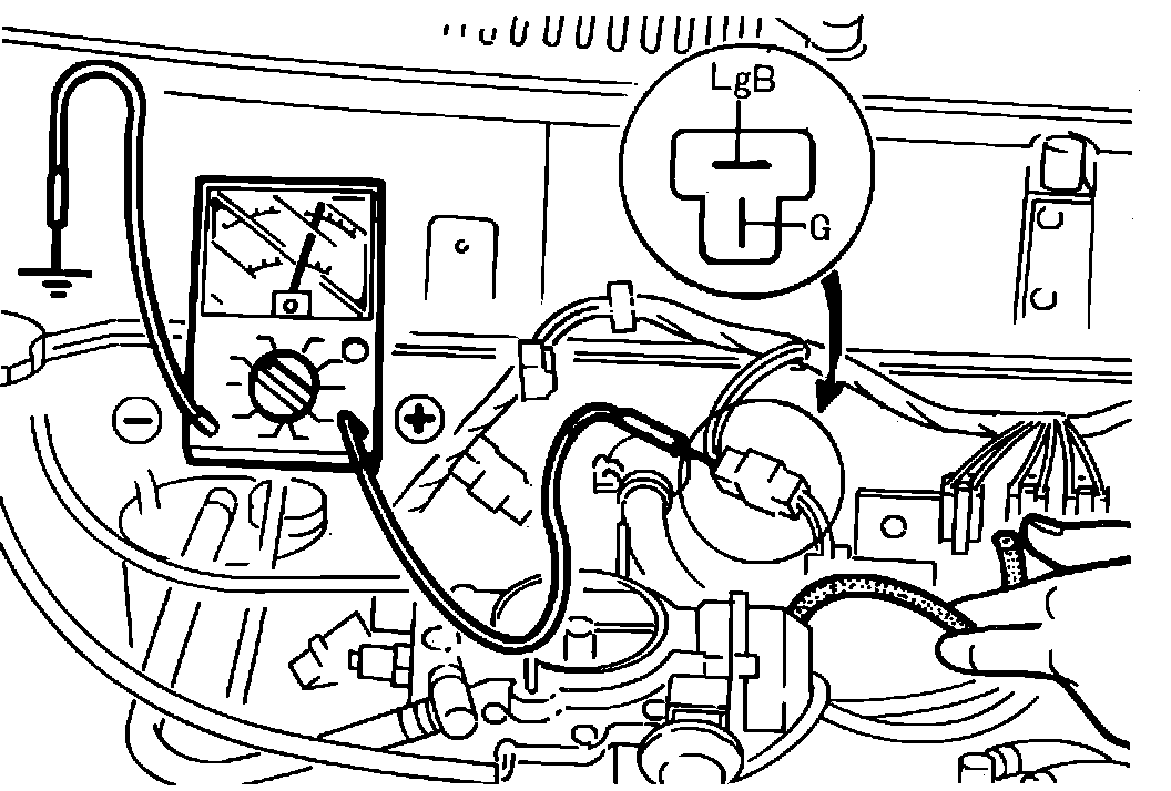 2. Connect a voltmeter to the vacuum switch connector G terminal as in Fig. 35.