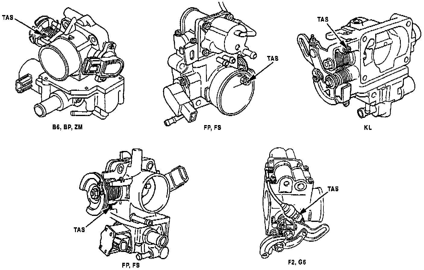 Fuel injected vehicles with idle speed control motors should NOT have the TAS (Throttle Adjustment Screw) adjusted for any reason. Refer to illustration. The TAS functions as a stopper when the throttle valve is fully closed. During production, the TAS is accurately set by measuring the airflow rate past a closed throttle plate. Any adjustment to this screw will affect PCM control of idle speed.