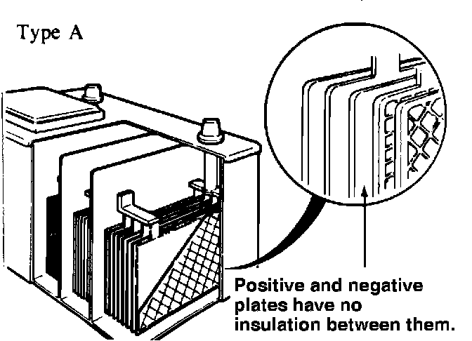 Early battery construction (Type A) provided no safeguard in regards to batteries shorting out from one cell to another.