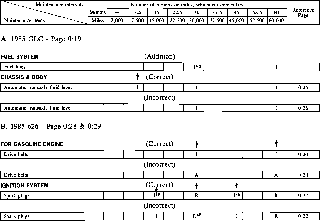 Maintenance - Service Interval Corrections to Manual