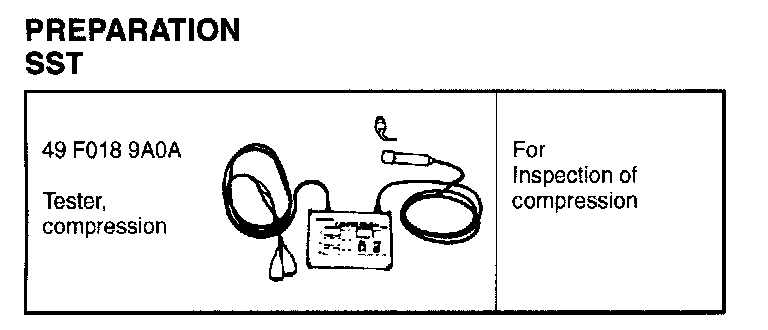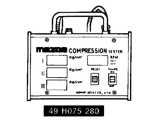 The compression tester for conventional piston engines reads only the highest pressure of the three combustion chamber in the rotor housing. Use compression tester (49 H075 280) to measure the compression of the three combustion chambers.