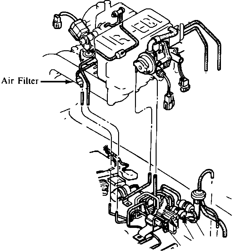 The air filter kit has also been established as a service part for the vehicle produced prior to this production change. If high idle speed or idle speed hunting is caused by the malfunction of the vent solenoid valve, install the air filter and attach the vacuum diagram label at the same time of replacing the vent solenoid valve. See Service Bulletin Category 4, 008/84 for additional information.*