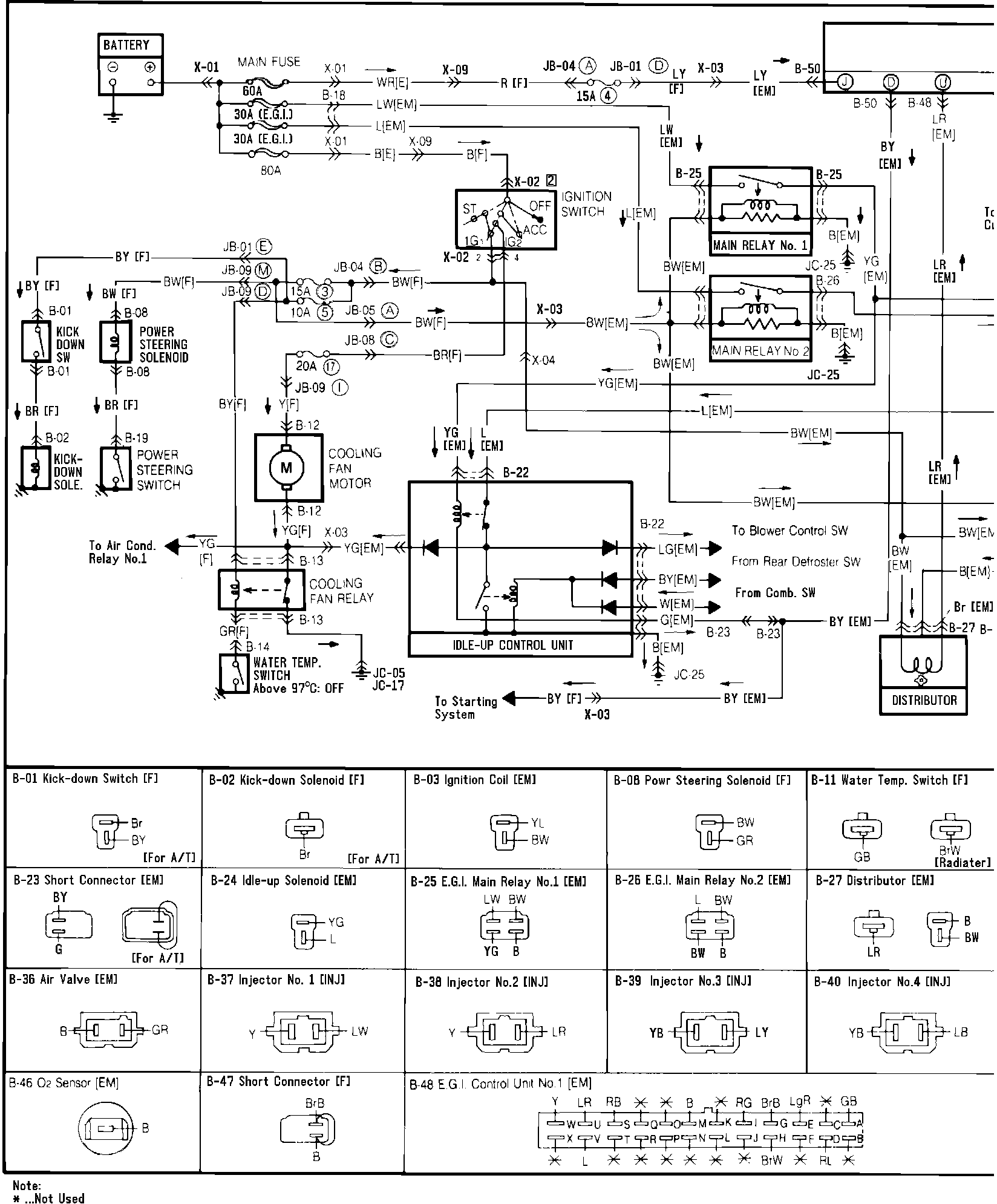 �%si�%Fig. 99c Cooling Fan, Emission Control, Fuel Injection Control, Idle-up Control & Ignition Systems & Kick-down Wiring Circuit: