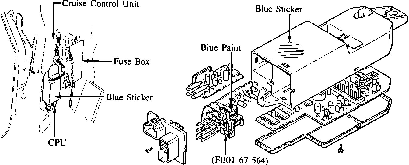 The printed circuit board inside the CPU on 1986 RX-7s now has a modified capacitor. This change is to prevent the possibility of the turn signals remaining on for an extra 2 to 3 seconds before going off. This condition could occur on early production vehicles only during the first time the signals are activated after the car has not been used for 12 hours or more.
