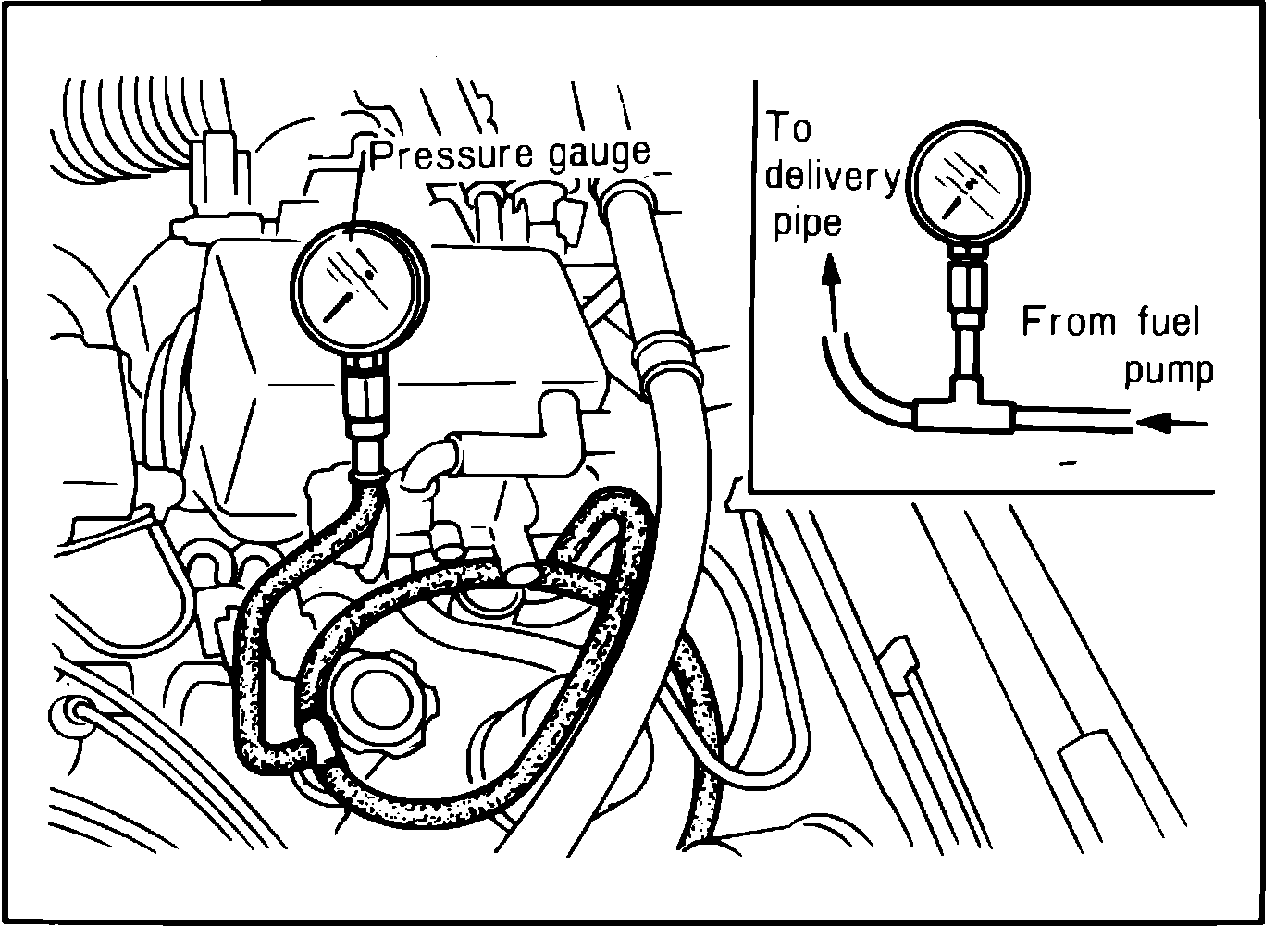 6. Reconnect vacuum hose at control valve, then measure fuel pressure. Fuel pressure should be approximately 28 psi.