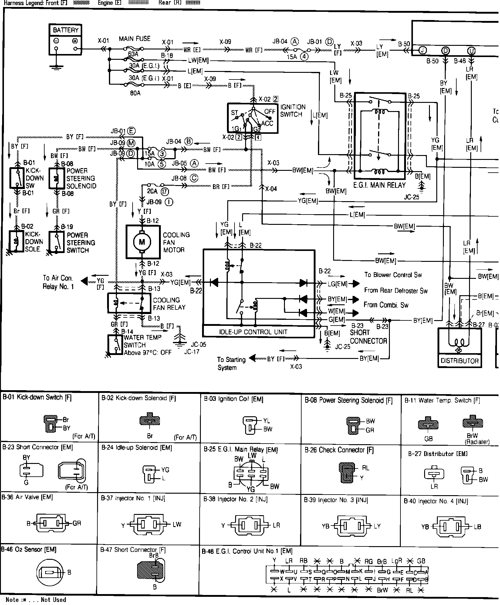 r y%Ky%Fig. 7c Cooling Fan, Ignition System, Emission & Fuel Injection Control System, Kick-Down & Idle-Up Control System Wiring Circuit. Exc. Wagon: