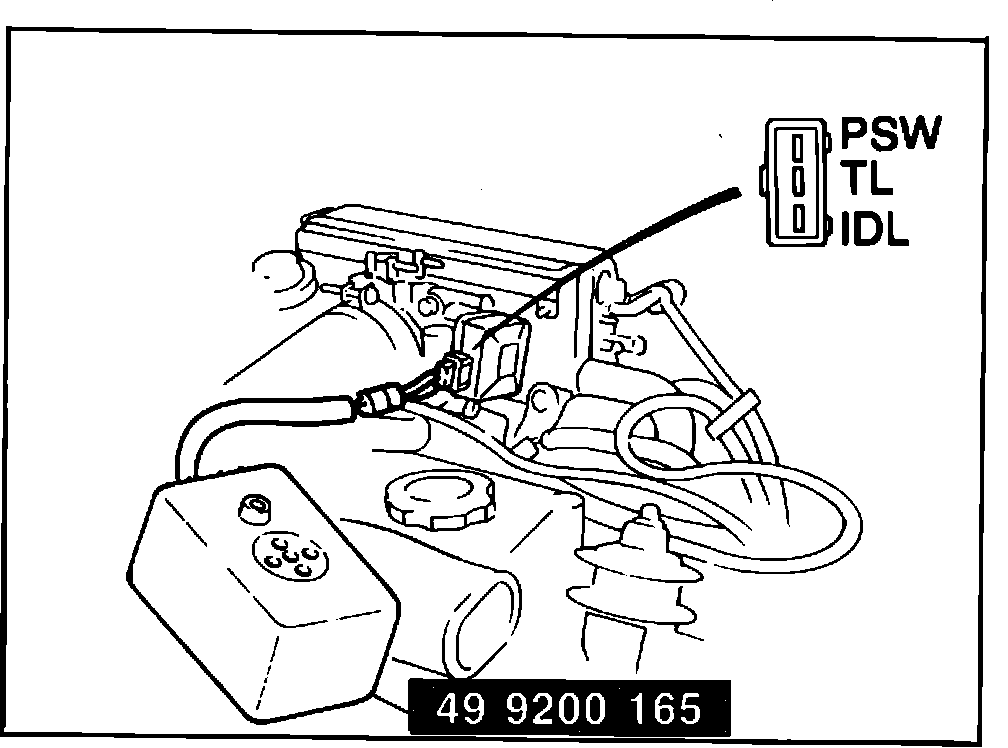 1. Disconnect connector from throttle sensor and connect tool 499200165 or equivalent Fig. 20.