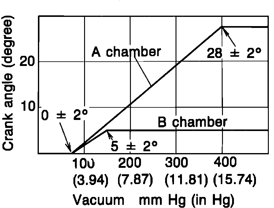 6. When the vacuum is further increased, the relation between the vacuum and advance should be kept within range Fig. 12.