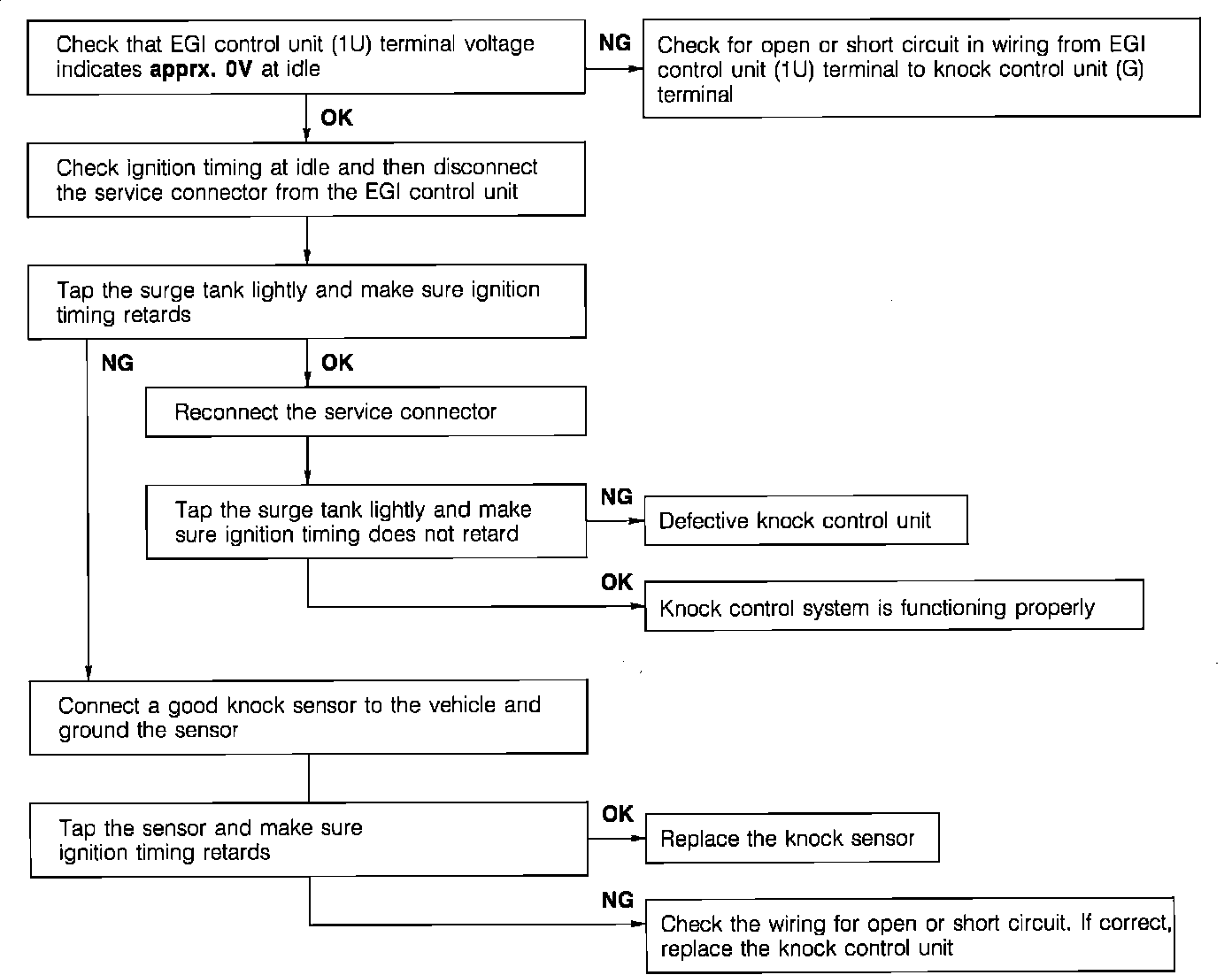 This troubleshooting is designed to diagnose components of the knock control system and should be performed only after determining that ignition system components are functioning satisfactorily.
