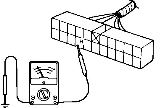 2. Raise and support vehicle, then check there is alternately continuity and no continuity when tire is turned manually.