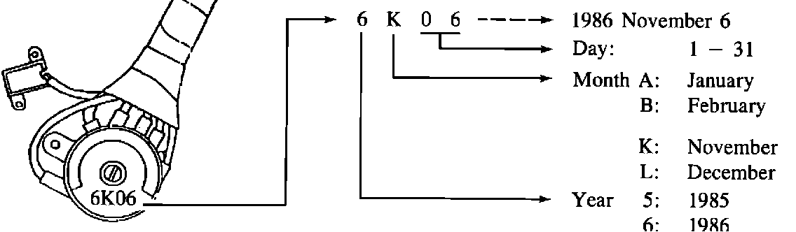 Install the modified part. Because the part number of the IG switch has not been changed, please distinguish one new part by the stamp on the IG switch as follows.