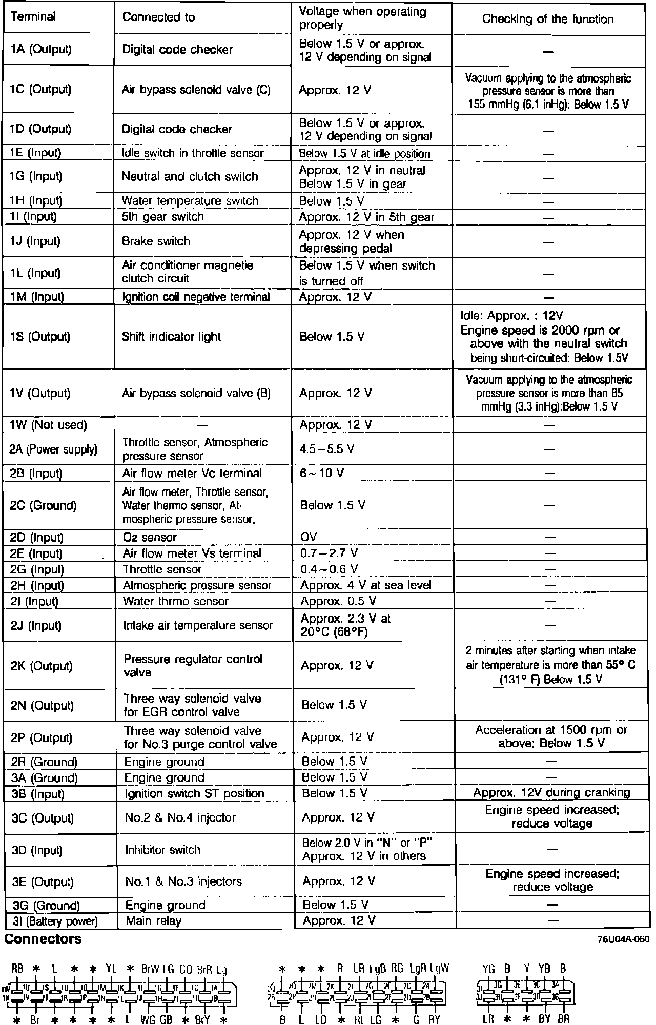 Fig. 63 Control unit voltage specifications chart. Non-turbocharged models: