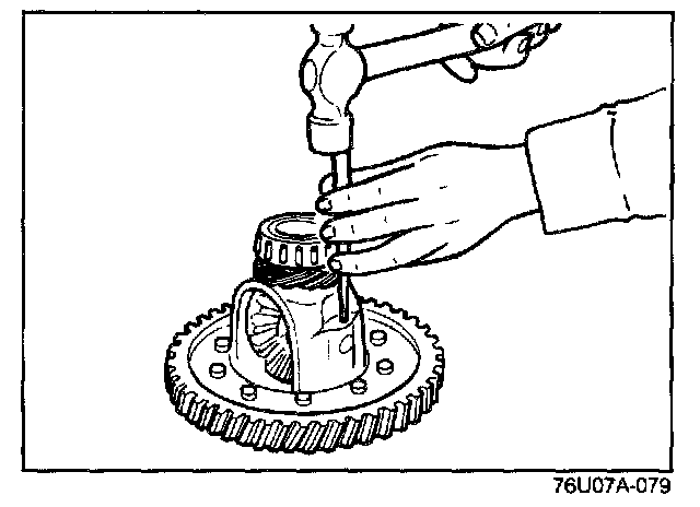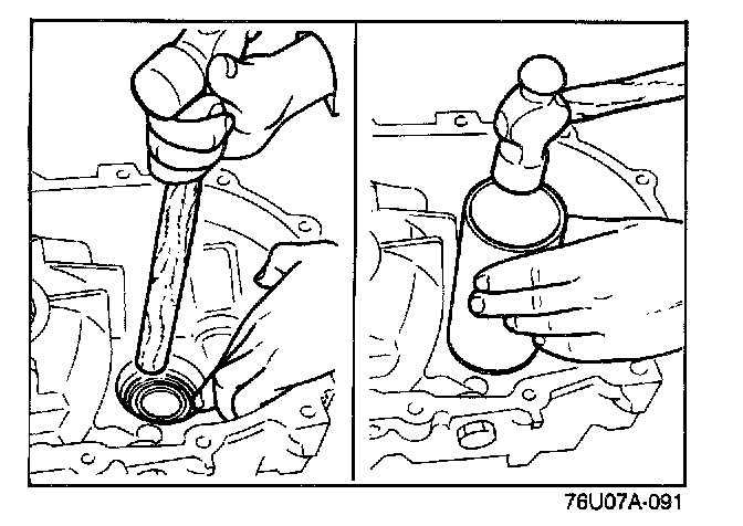4. Tap the bearing outer races with a hammer handle until they are flush with the end of the transaxle case.