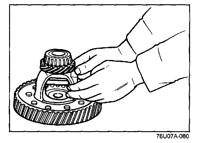 b. Insert the pre-load adaptor (49 G030 455) into the driveshaft coupling hole. If this is not done, the side gear will turn on the pinion gear within the differential gear case, and it might become necessary to disassemble the transaxle again. Leave this adaptor attached until you are ready to install the driveshaft.