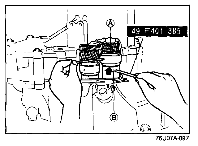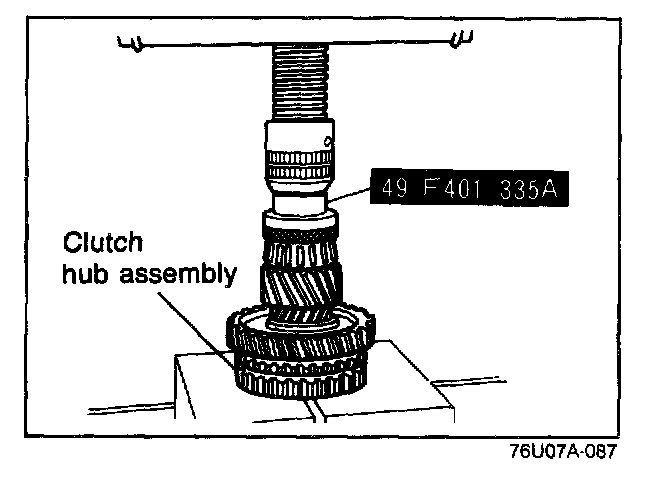 7. Press the clutch hub assembly onto the shaft gear using attachment A (49 F401 335A) of the bearing installer.