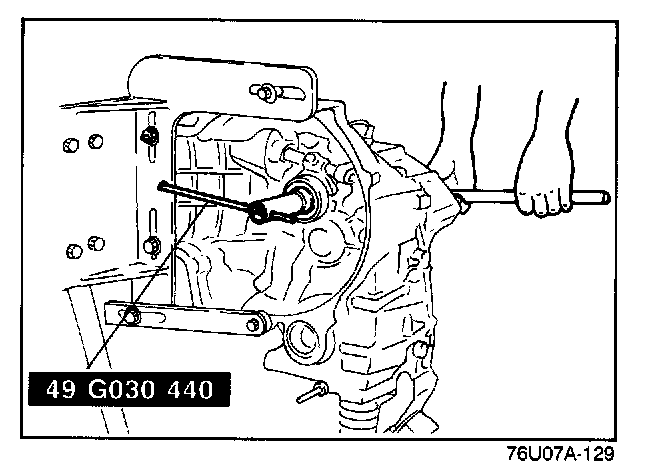9. After locking the shaft gear using the primary shaft holder (49 G030 440), tighten the primary shaft gear and the secondary shaft gear lock nuts to the specified torque.