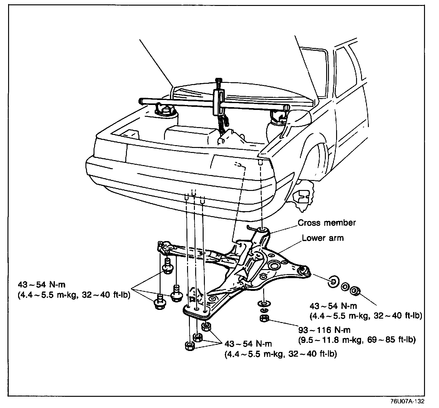 8. Install the crossmember and the lower arm assembly.