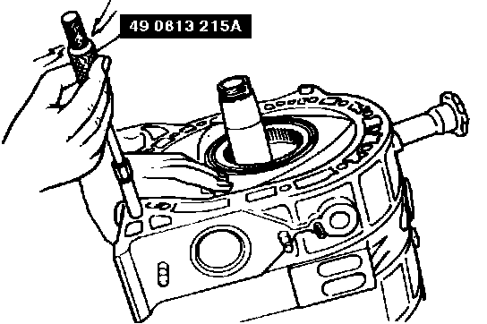 5. Place a suitable protector onto the inner oil seal lip to protect the oil seal lip and remove the outer oil seal with remover (49 0813 225). Do not exert strong pressure at only one place to prevent deformation of the oil seal.