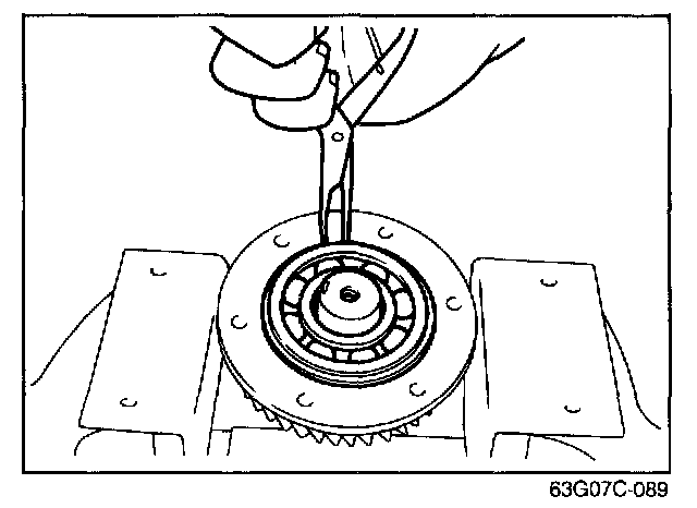 2. Remove the bearing outer races by using the two grooves in the carrier and tapping the races alternately.