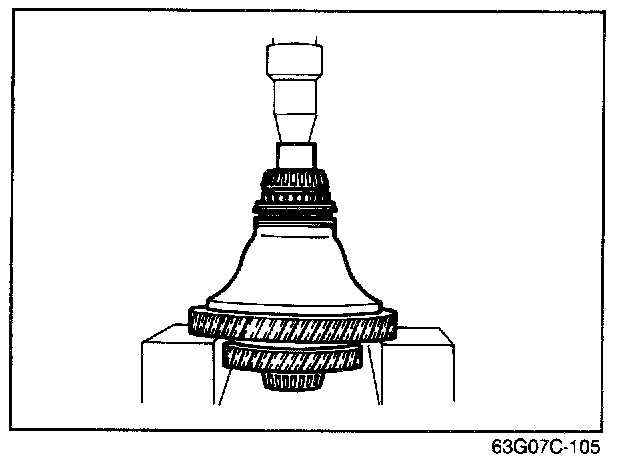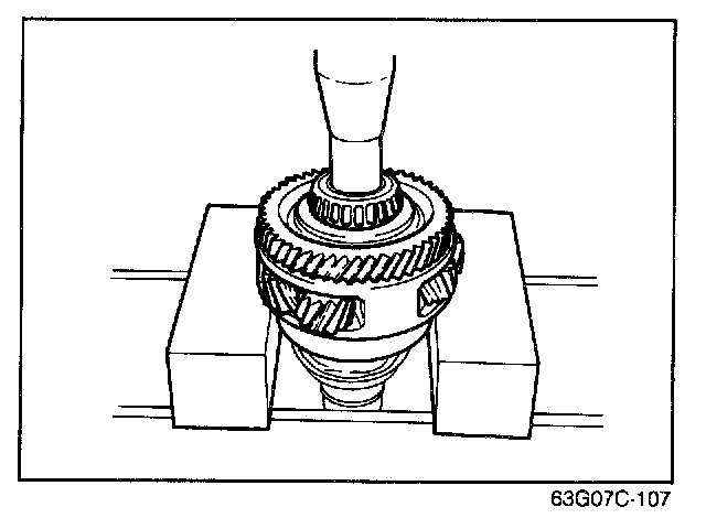 4. Remove the bearing inner race using a press, then remove the washer, gear case needle bearing, sun gear, planetary carrier and gear case needle bearing.