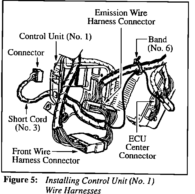 3) Connect the short cord (No. 3) between the front wire harness and emission wire harness connectors. Figure 5.