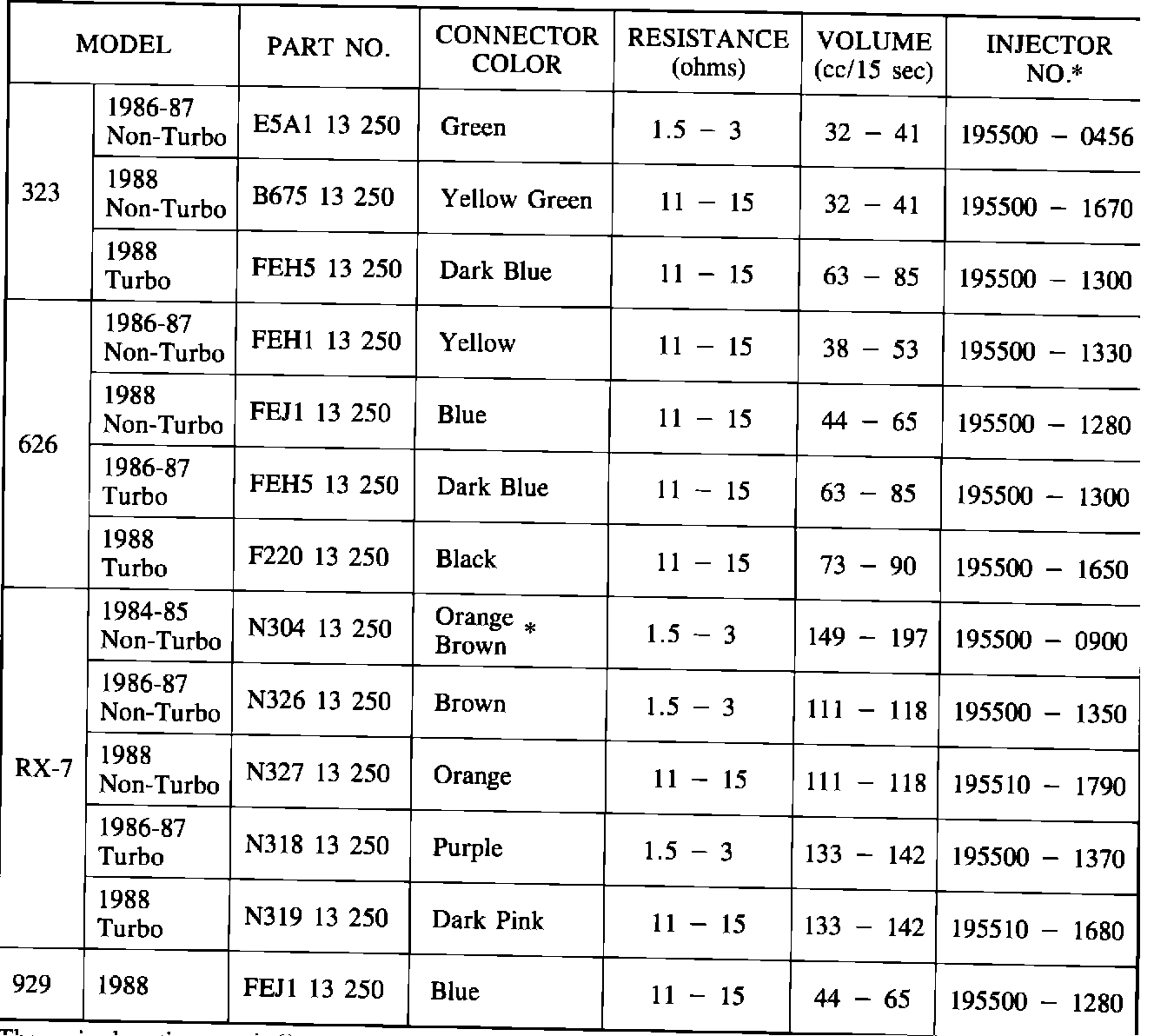 Mazda fuel injectors are color coded for identification purposes. Here are the color codes and models.