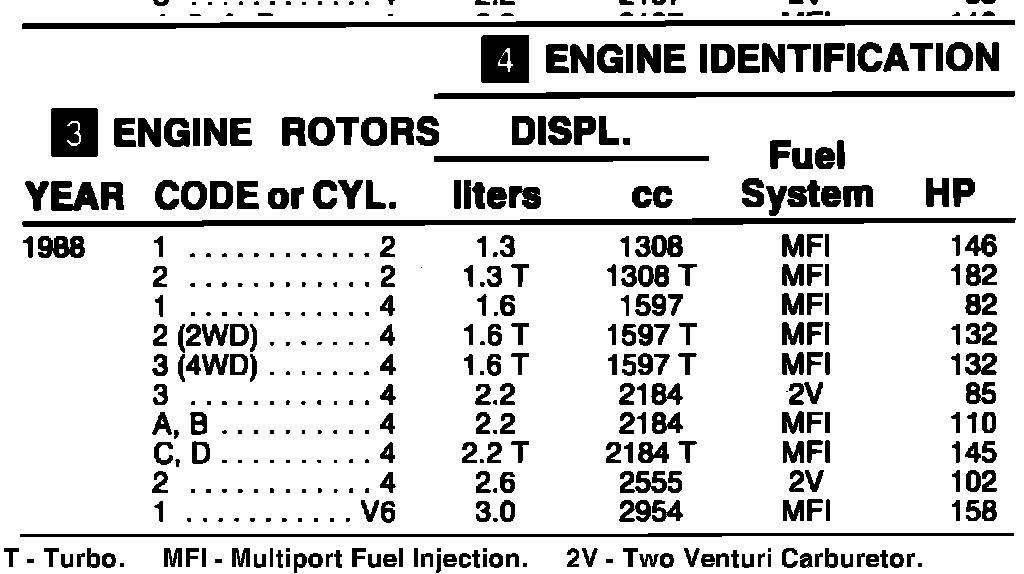 (4) ENGINE IDENTIFICATION: On the line where the engine code appears, read to the right to identify the engine.