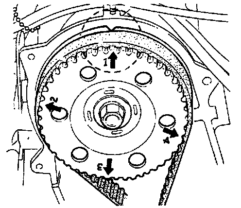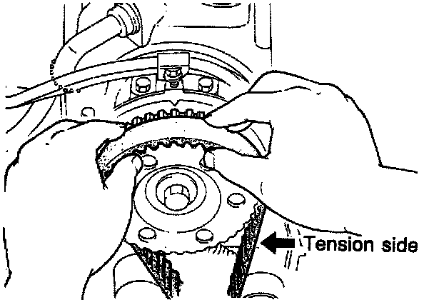 - If the timing belt is being reused, it must be reinstalled to rotate in the original direction.
