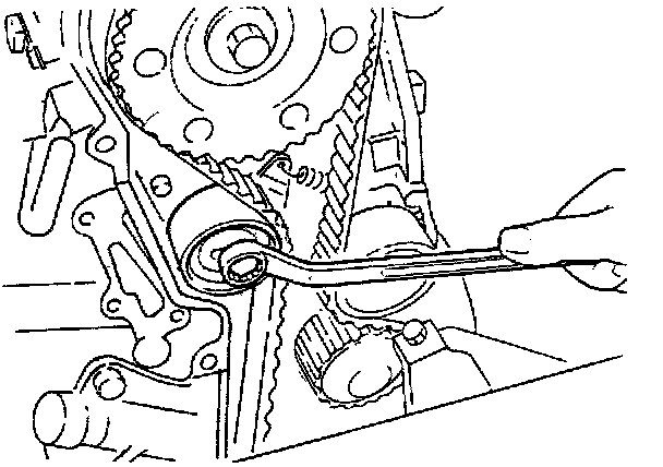 i. Check the timing belt deflection. If the deflection is not correct, repeat the adjustment from step e above.