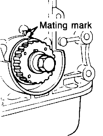CAUTION: Incorrect removal or installation of the timing belt can result in damage to internal engine components.Fig. 27 Aligning timing belt pulley: