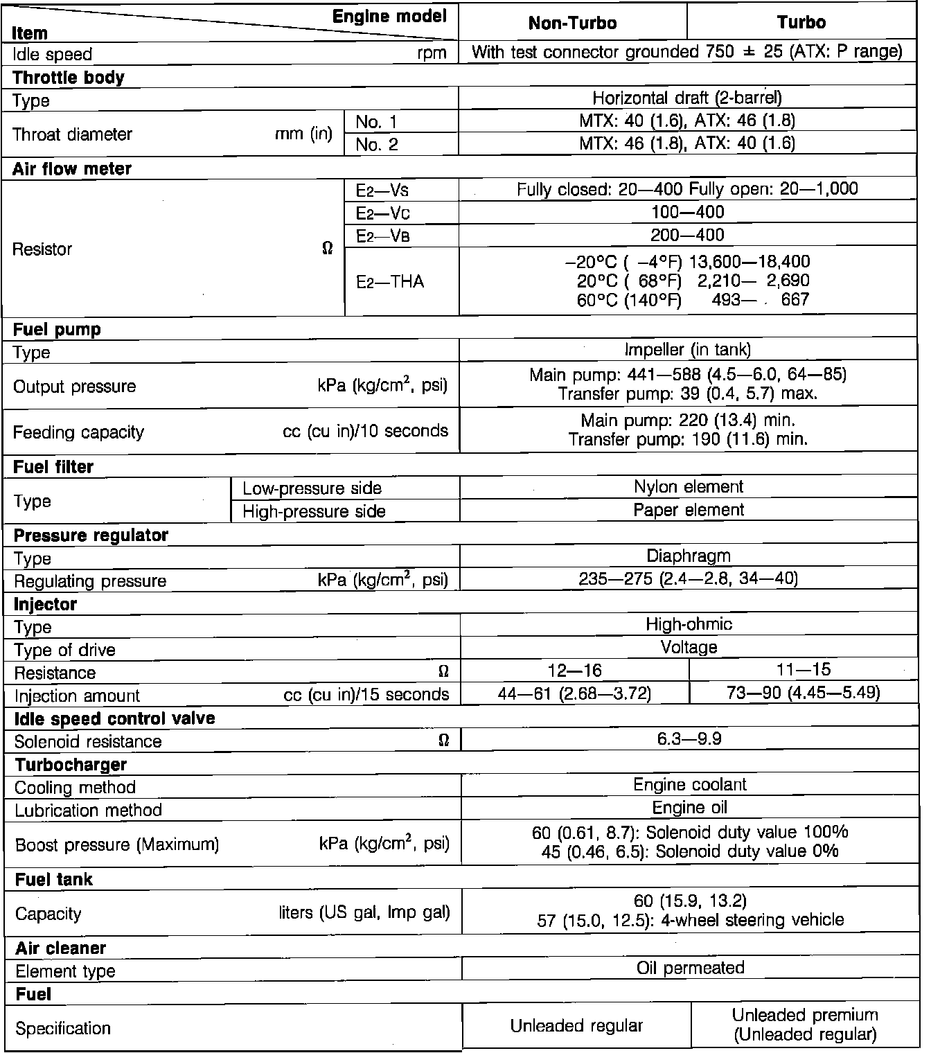 Fig. 9 Fuel System Specifications (4A & 4B):