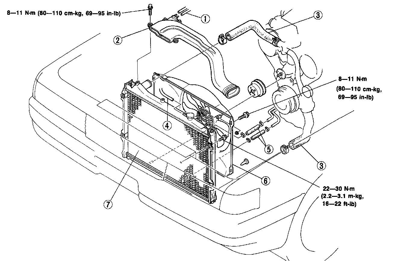 6. Cooling fan and radiator cowling assembly.