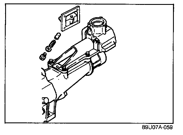 If the blind cover assembly has been disassembled, install the blind cover on the transmission, then install the spring pin, spring, and the plug and gasket.