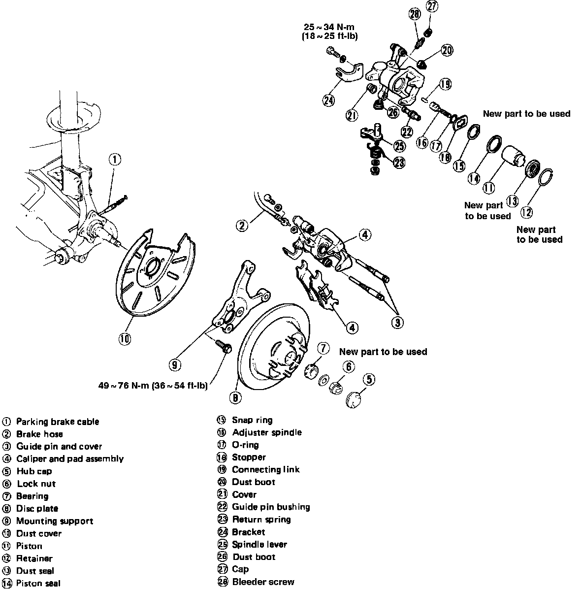 When overhauling caliper assembly, refer to Fig. 13. Reverse numerical disassembly sequence for assembly.