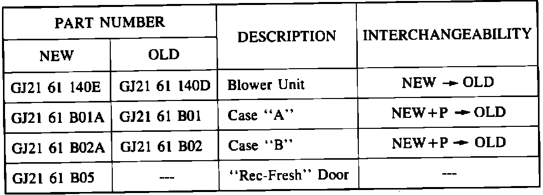 If a customer complains that the manually operated "Rec-Fresh" control becomes hard to operate in the modes listed below, replace cases "A" and "B" and the "Rec-Fresh" door of the blower unit with the modified parts listed in this bulletin.