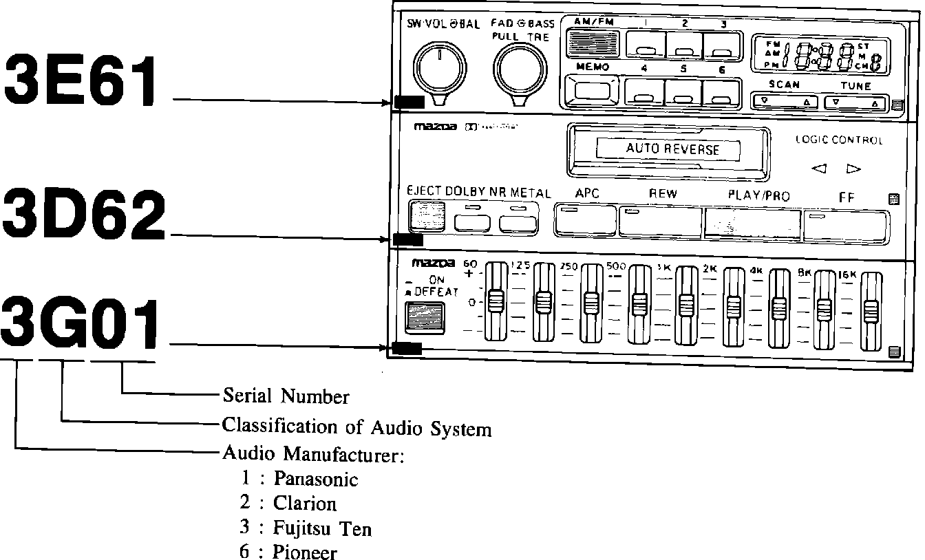 The identification number (ID No.) has been provided for the audio component since 1988 model in order to make it easy to distinguish the audio manufacturer.