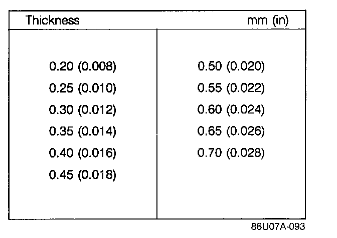 13. Add 0.15 mm (0.0059 in) to the measured clearance and select the combination of shims closest in value to that measurement.