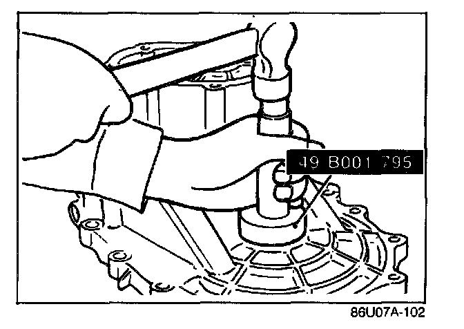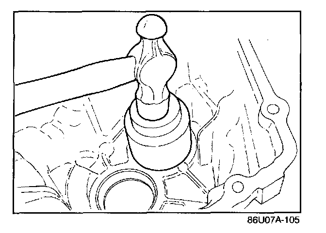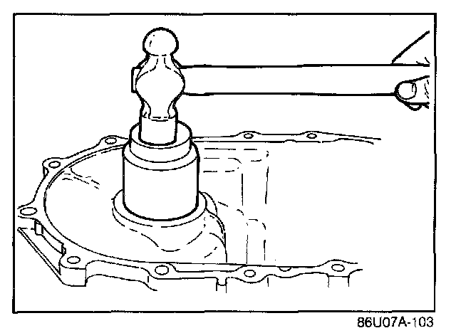 2. After mounting the clutch housing onto the transaxle hanger, tap in the differential bearing outer race with a hammer handle until it is flush with the end of the clutch housing.
