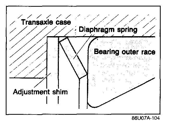 6. Install the adjust shims, diaphragm spring, funnel, and bearing outer races.