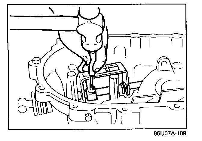 12. Use a feeler gauge to measure the gap in the selector for the differential.