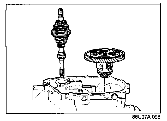 1. Set the primary shaft gear and the differential into the clutch housing.