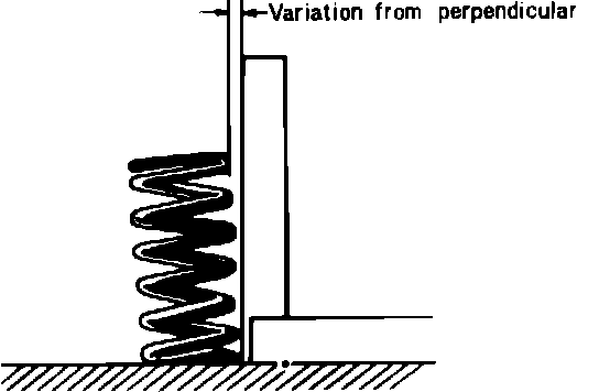Inspect each valve spring for cracks or damage and check free length and angle, replacing as necessary. Intake spring free length should be 1.949 inch (49.5 mm) and must not be less than 1.902 inch (48.3 mm). Exhaust spring free length should be 1.984 (50.4 mm) inch and must not be less than 1.937 inch (49.2 mm). Valve spring angle limit must not exceed .067 inch (1.7 mm).