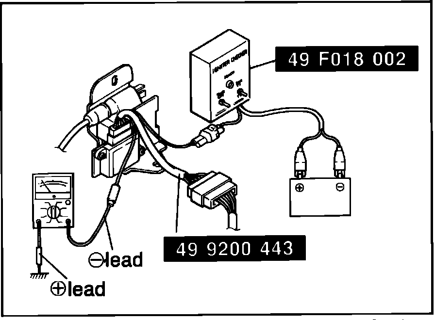 2. Connect tool 49F018002, Fig. 9. or equivalent between igniter and igniter connector.